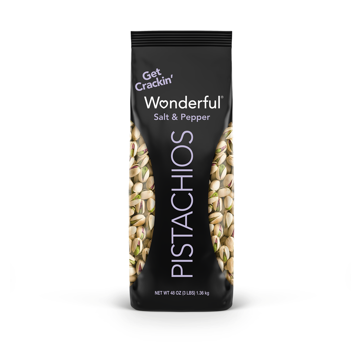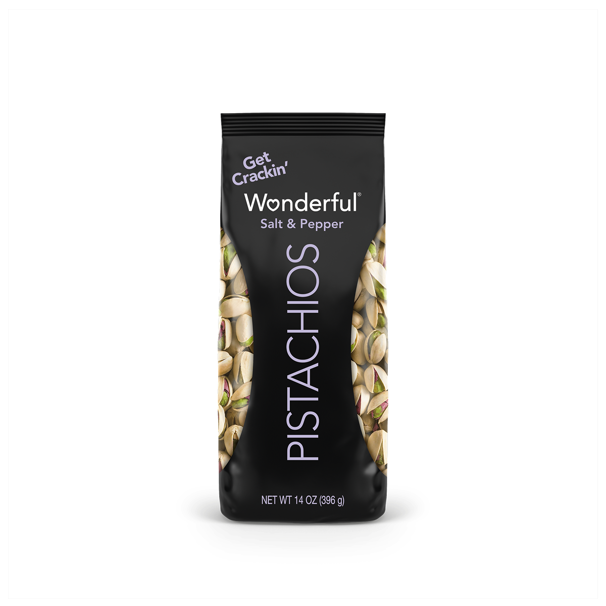 Shake it up with Wonderful Pistachios Salt & Pepper. These pistachios are loaded with tasty goodness, and seasoned with salt, spicy black pepper, and a dash of garlic. Rich and flavorful, they add a little pizzazz to smart snackin’.