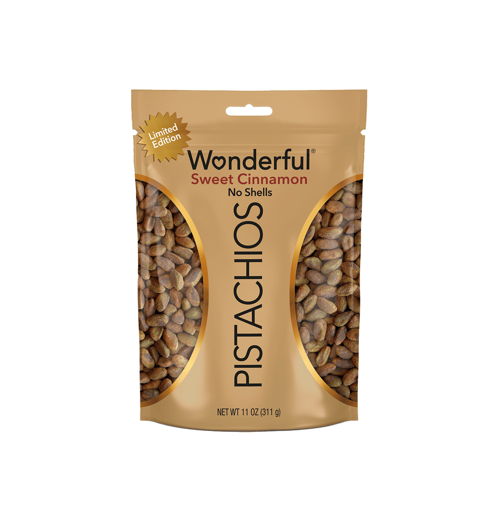 Nothing brings holiday cheer like Wonderful Pistachios No Shells Sweet Cinnamon. Sweet spice and everything nice, they're like a healthy, guilt-free cinnamon roll with a welcomed crunchy twist.
